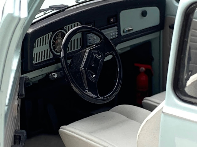 6. Cuantas pasiones generó el escarabajo, siendo sencillo, estéticamente nada destacable (vale para el fitito, la rana , R4 y alguno mas), lo que se dice belleza exótica, que , después de verse mucho, generan simpatía, es mas, hace tiempo, conseguí un lote de autitos, evidentemente de un fana de VW, y, entre los muchos escarabajos, hay escalas diversas, calidades para elegir, obviamente está Herbie, hay teléfono y mouse escarabajo, adornos varios, como para el campeonato, mas allá de los que se han vendido (o están para hacerlo), en "aduana" me quedó un split 1/12 de sun star que es un lujo. Que decir del laburo de Schuco, es tal la calidad que, aún con macro, sigue destilando perfección, los detalles, la pintura, la precisión, ese detalle del vin grabado es una locura, esta gente, aún de un auto sencillo (desde ya que es mas fácil poner detalles en autos con tablero de nogal, muchas insignias y demás detalles), hacen una joya. En el lote que comenté, hay una T1, que parece mentira como sacarle el jugo a la espartanidad hecha auto, los de Schuco lo hicieron. El único detalle que les criticaría es que usaron de auxilio la misma rueda que las titulares, y, para usarla sin taza, tendría que haber tenido las formas de la rueda desnuda (relieves, agujeros, etc) pero es solo para que quede en "nada mas" que un 10, sino era un 11. Felicitaciones por el modelo. Saludos. Luis